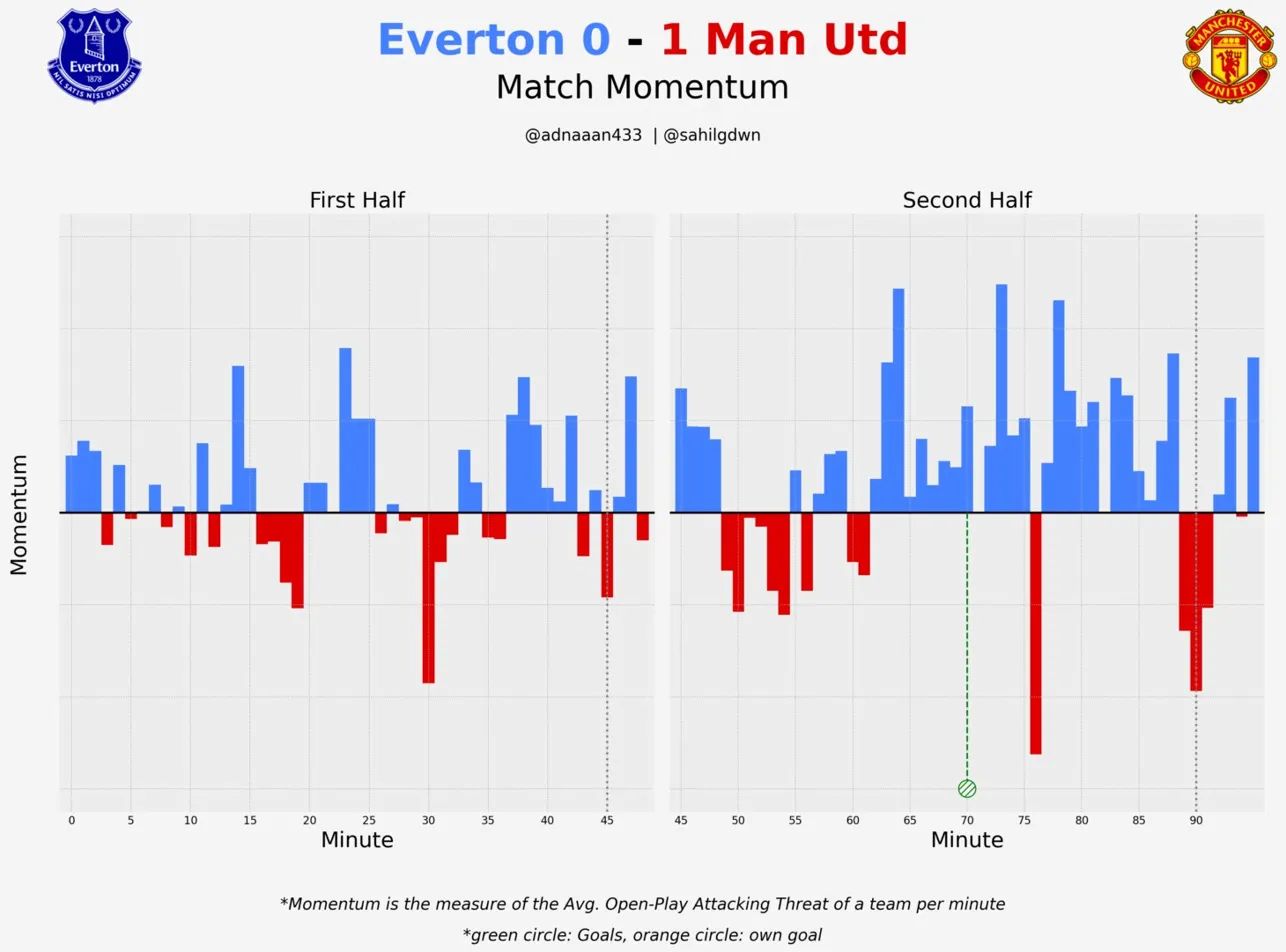 2nd half: 0.58–0.83 (Everton owned the territory, United owned the moments)
