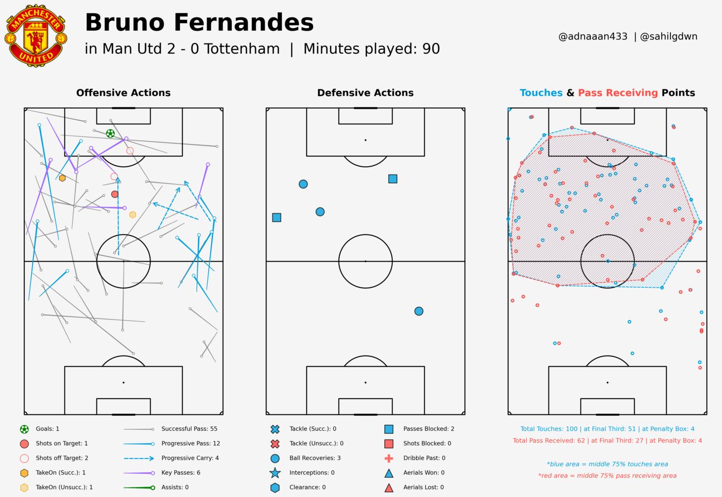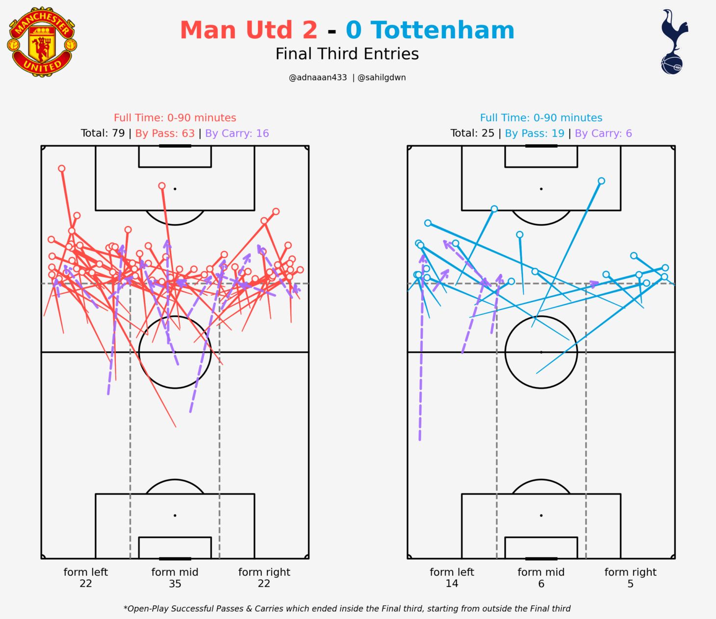 Final third entries map showing Manchester United dominance vs Tottenham